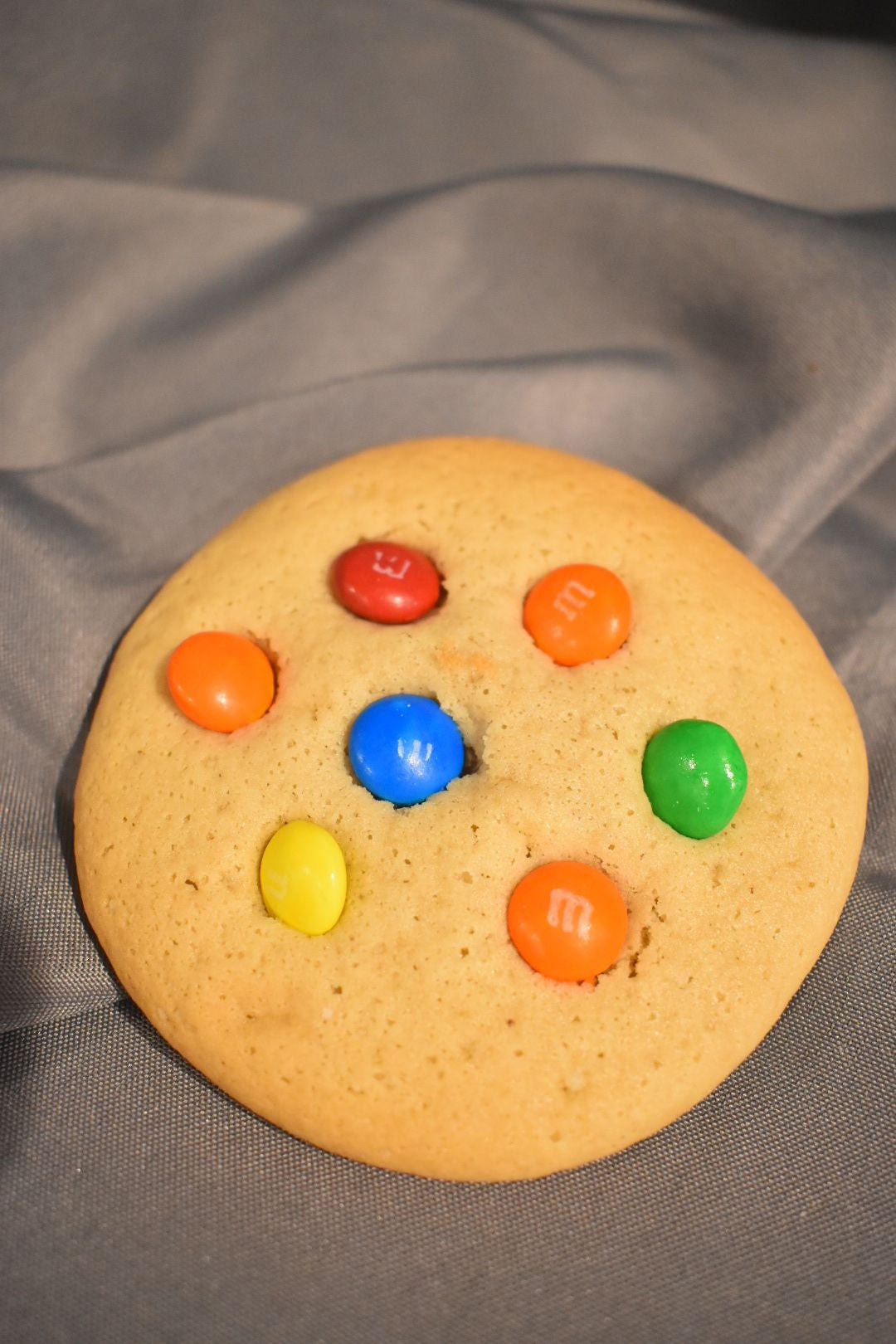 Chewy M&Ms: flour (bleached wheat flour), milk chocolate, butter (vegetable oil blend), white sugar, brown sugar, eggs, baking soda, salt & vanilla extract