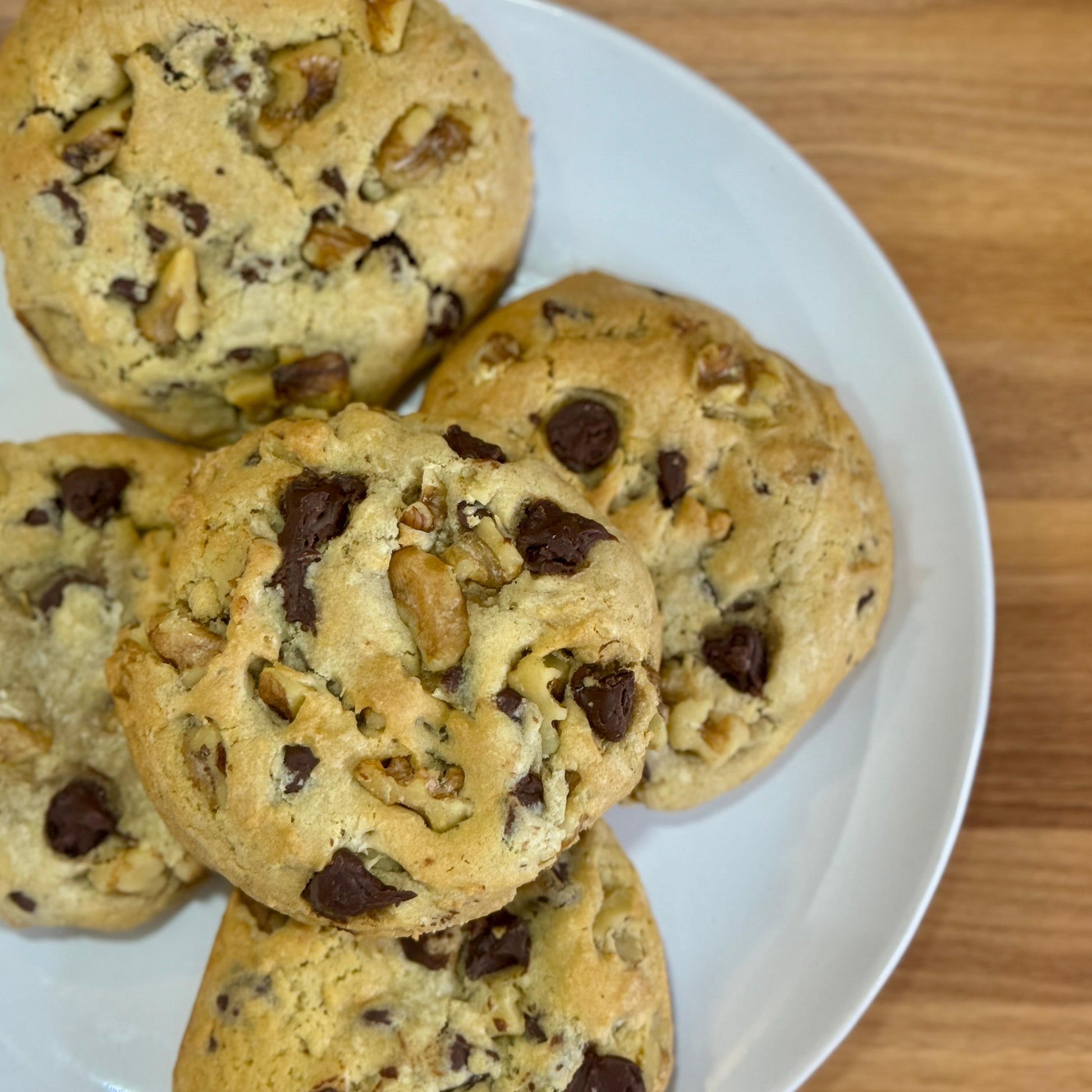We believe a great cookie should be more than just delicious—it should be an experience. Our Signature Plus Chocolate Chip Cookies are baked in small batches using high-quality, all-natural ingredients, then finished with crunchy walnuts for an elevated take on a classic favorite.