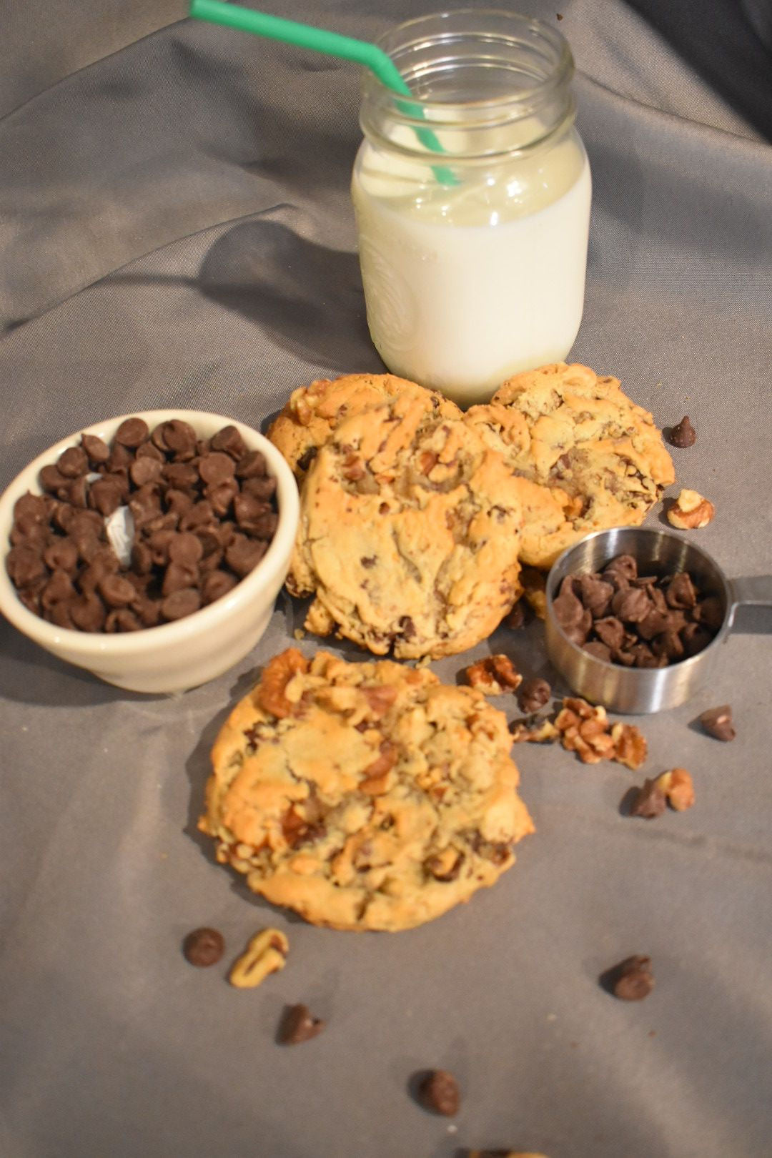 Chocolate chip cookies: flour (bleached wheat flour), chocolate chips, butter (vegetable oil blend), water, salt, white sugar, brown sugar, eggs, baking soda & vanilla extract